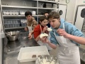 Le mercredi, veille du jour J, une brigade spéciale s'est activée pour le dessert. Quelques élèves motivés ont mis la main à la pâte pour préparer la célèbre Schwarzwälder Kirschtorte (la Forêt-Noire). Génoise, crème et cerises... un travail de précision pour un résultat ultra gourmand.